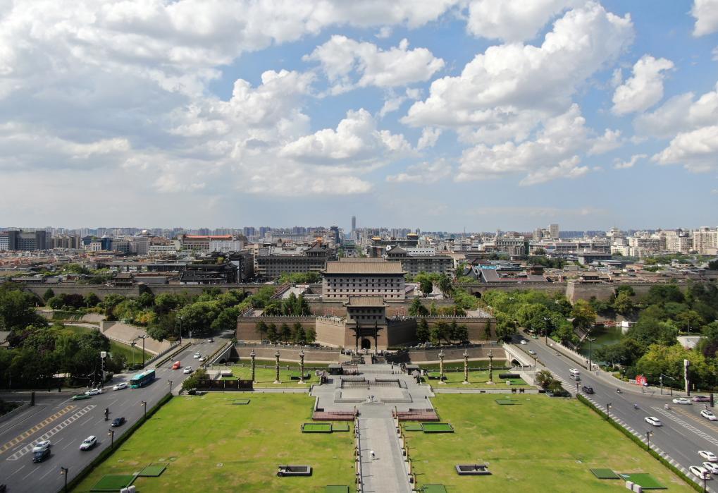 西安城墙永宁门(7月26日摄)(无人机照片)。新华社记者李一博摄